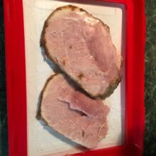 Our trays are made of polypropylene plastic, with the wrap being advanced elastic film. All trays are white with a red border frame for the film cover. Each tray measures 9 x 12 x 1.14 inches (L x W x H).