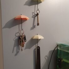 Like opening an umbrella on a wet day, our hooks get to work in the blink of an eye. Each hook comes with double-sided adhesive tape, so all you have to do is remove the protective film and adhere the hook to the wall. Need to shift gears or change? Removing the hooks is easy without worry of removing paint or damaging your walls.