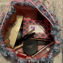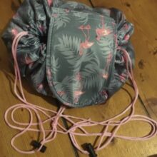 Really cute but very useful make-up bag. Easy to see all your make-up and useful compartments for pencils etc that you don’t want loose, you can have it as open as you want just use the drawstring and then tighten it all up and close the flap over and voila all done !