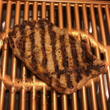 Great device, nice grill marks, hardly any smoke, and tasted delicious! I put it on top of my flat top stove so I could use the range hood for ventilation, but there was very little smoke to be seen! Clean up was a breeze, I just used a sponge with warm water and Dawn dish soap, in fact I could just spray off all the greasy stuff off with my faucet sprayer! Next time I will grill some burgers, this makes grilling simple and fun!!