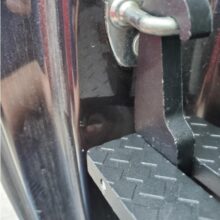 Government safety testing protocol in the U.S requires that every vehicle door latch be able to withstand a vertical force of 2,500 pounds and a horizontal force of 2,000 pounds without failure. Our aluminum-alloy step supports just about any sized human, with up to 440 pounds of support. Step up with confidence without fear of falling or slipping.